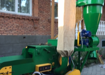 Пропускная способность до 5 тонн. Пропускает: Зерно, Кукурузу в печатке и в стебле, сено и солому. Мощность 22 КВТ