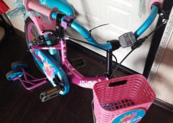 Детский велосипед для девочки 4-8 лет + 2 маленьких колеса, в хорошем состоянии