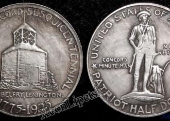 50 центов Полдоллара 1925 года США 150-летие сражения при Лексингтоне и Конкорде посеребрение