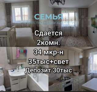 34-мкрн 2комнт 35тыс+свет Депозит 30тыс