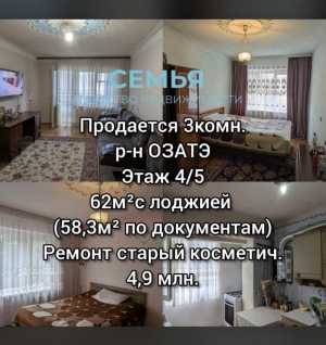Тип объявления: Продам; Вид объекта: Вторичка; Количество комнат: 3; Тип дома: Панельный; Площадь: 60; Этаж: 4; Этажей в доме: 4;