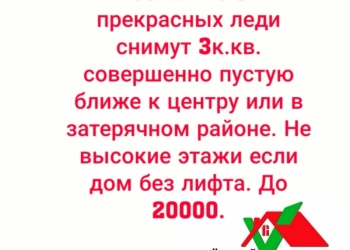 Семья из 3 прекрасных леди снимут 3к.кв. совершенно пустую ближе к центру или в затерячном районе.